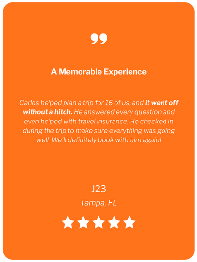Carlos’s expertise became evident as he guided us through our options. His recommendation to go with Virgin Voyages for our cruise was spot on. Not only did he have a deep understanding of the various travel packages available, but he also anticipated our needs and offered thoughtful solutions tailored to our group.